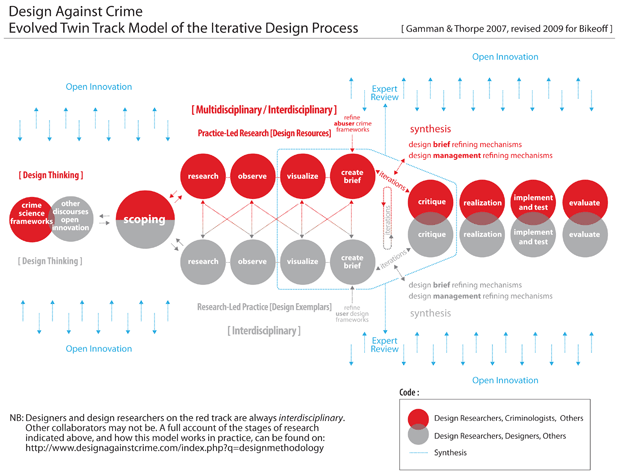 To respond to the RSA competition, users can draw on the material in the green and red sections. To help make your thinking about crime more rigorous, and to work out practice through user/abuser centred design visualisation and prototyping, we have created two further tools you might find helpful. They can be accessed via our design against crime website as follows: