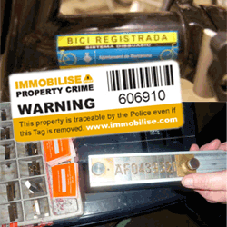 A principle reason police fail to reunite recovered biycles to their rightful owners (Johnson et al. 2008) is linked to the proof of ownership problem: the majority of cyclists cannot provide proof of ownership for the retrieved cycle. As a result, bicycle registration schemes are a popular mitigating response to bike theft. Schemes such as Immobilise can help reduce cycle theft because : 1) the registration of cycles makes it easier to identify stolen bikes and determine the rightful owner of a bicycle, and 2) it may also serve to deter bike thieves by making registered bikes harder to sell on.