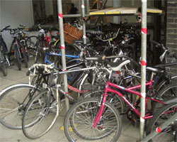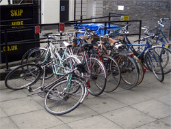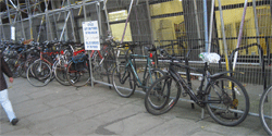 At the rear of the building next to the Students' Union is an overground uncovered bike parking area which is connected to the Royal College of Art. Users can access the facility via the street. Parking furniture is offered via Sheffield U-stands but due to a lack of furniture, students also use barriers and lampposts to park their bicycles. The parking is free public parking available 24/24 hours but it is assumed that most of the users are students so in effect the facility operates 16 hours/day. These facilities were installed when the building was built in 1961.