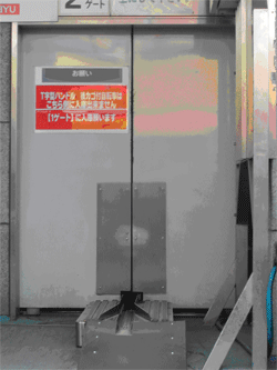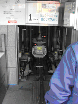 A facade hoist cycle storage facility serving Seiyu Department Store, Kichijoji branch, East Tokyo Japan. Parking is provided for up to 340 bikes. Access to the facility is via two gates on the exterior front from street level. Users can only access the system with registered member cards that Seiyu department store issues to their customers in conjunction with a loyalty card scheme. Parking furniture is vertically mounted behind the façade of the department store. The facility is staffed between 1000-2300 by department store staff. Parking is free of charge once a yearly fee of ¥3000 (£15) is paid. Users can park for free for 4 hours. Additional time is charged to the user’s loyalty card; this measure is to prevent customers from overloading the facility.