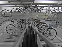 An overground uncovered bike parking facility serving Takadanobaba train and metro station. Parking is provided for up to 1065 bicycles. Access to the facility is open, though it is not very visible for pedestrians from the street and it does not appear on the local maps as a bicycle parking facility. Parking furniture is two-tier (‘double decker’) to maximise space. The facility is staffed 0700-1900 week days. Users can park 24hrs either paying subscription fees for monthly or annual parking; alternatively users can pay ¥100 for a days' parking. Weekends and holidays are free of charge.