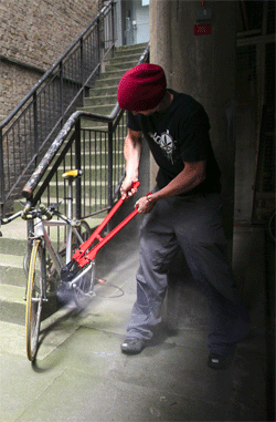 This bike lock designed by Mike Lambourn aims to deter the opportunist thief by making the abuser's experience as unpleasant as possible without having a detrimental effect on the user.