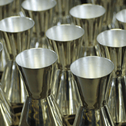 Metal stamping is a cold metal pressing technique used to form shallow sheet and bend profiles between matched steel tools. Tooling costs are high and so this process is only suitable for medium to high volume production. It is rapid and precise, and is used to produce a wide range of everyday products from car bodies to metal trays. It is known as deep drawing when the relationship between depth and diameter mean that controlled drawing is required, which slightly reduces the material's thickness during forming. Very deep parts can be formed using progressive dies.