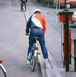 One of the most important of those infrastructure elements is the bicycle lift Trampe, created by Design Management AS. Since the lift’s opening in 1993, it's pushed more than 220,000 cyclists up the very steep Brubakken hill in the historical heritage part of the city centre. In a user survey, 41% of the lift users claim they're using the bicycle more often due to the installation of Trampe and 71% said it was easy or very easy to use.